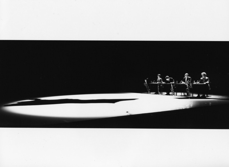 That BL!NDMAN collaborates with a visual artist in Momentum comes as no surprise. Ever since their formation in 1988, BL!NDMAN has had an affinity with the visual arts. The company was founded by Eric Sleichim for the performance of his composition Five Movements for Beuys during the Festival The Bold Years at the Centre for Fine Arts. Eric Sleichim himself further collaborated with visual artist Royden Rabinowitch, and the composition he wrote for BL!NDMAN to close Documenta IX, was dedicated to Olivier Messiaen and Francis Bacon. The concept of Momentum is a joint design by Eric Sleichim and visual artist Trudo Engels. A preliminary study on this performance was shown in Lille in 1992. Together with director Guy Cassiers, they built further on that try-out. However, the relationship between the music and the installation remains the same: both are equal elements in a concert.