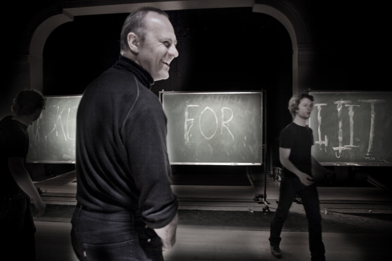 Gebaseerd op een tekst van Peter Handke schrijven vier personen in strak ritme zelfverwijten met krijt op een schoolbord en vegen ze weer af. Het levert een beklijvende brok percussietheater op. Om het geheel af te sluiten zet Jasna Velickovic, met elektrische spoelen, duimpianos aan het zingen. De etherische klanken worden overweldigd door een ‘laatste lied’ van Richard Strauss en verglijden zo in een apocalyptische vloedgolf.