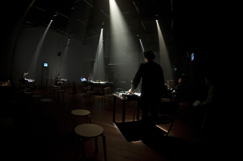 Met hun 8 platendraaiers creëren de musici een vervreemdende wereld die het instrument, vooral aanwezig in het ‘clubcircuit’, in de hedendaagse klassieke muzieksferen brengt. Videokunstenares Olga Mink (NL) bouwt de totem.