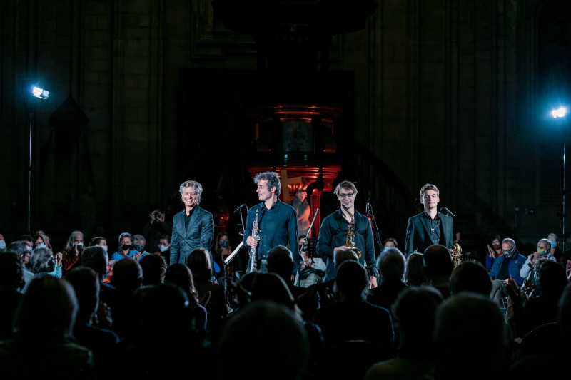 In his search for untapped potential for saxophone, Eric Sleichim has since 1999 also focused on early music. Often in collaboration with specialised ensembles such as Collegium Vocale Gent or the Huelgas Ensemble, BL!NDMAN [sax] picks out music by the old grandmasters and rediscovers forgotten sound magicians. The groundbreaking arrangement of J. S. Bach’s four chorale partitas became an instant success and tours the world. An extensive repertoire of early music emerges over the years, transformed for a contemporary saxophone quartet. Numerous projects around the works of Gesualdo & Buxtehude (Stylus Fantasticus), Orlando di Lasso (Chromatic Variations), Schütz (UTOPIA: 47), Handel (WATER & FIRE / Handel Revisited ) and Petrus Alamire (MORGEN!) with one of the highlights being the release of the album 32 Foot / the Organ of Bach which was awarded the Klara for best CD production on the 25th anniversary of BL!NDMAN [sax]. The dialogue between old and new music also takes centre stage with BL!NDMAN [sax]. The quartet brings ancient masters of sound into conversation with composers such as Jonathan Harvey, John Cage or Helmut Oehring. In Multiple Voice, even polyphonic works from the 12th to 16th centuries are given a place alongside contemporary compositions.