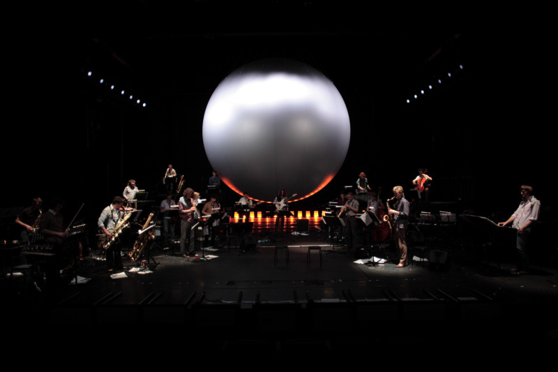 Globus is the result of the “20×20-concept” that was developed for the 20th anniversary of BL!NDMAN (1988-2008). While the ear registers indefinable sounds, the eye sees an immense globe around which a tribe is making gestures that seem to refer to an ancient rite. Sonorous textures emerge from all sides and fill the space like a whirlwind. Wonderful pearls of ancient and modern music are deduced from this bulk. Polyphony is being woven, aria’s and quartet movements glide towards a plastic gesture where the image tells us about sounds of silence.