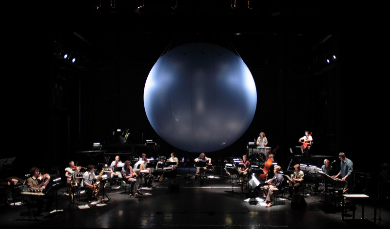 ‘Here, the stage is not only a podium, it is a space where a mise en scene is created with light and symmetric changes. The music that sounds, is amorphous, to say the least. It too has to find its contours. It also wanders. From minimal music to Helmut Lachenmann and back to Cage and Charles Ives, but also between centuries.’ Tim Gorbauch, Frankfurter Rundschau – 6 januari 2009