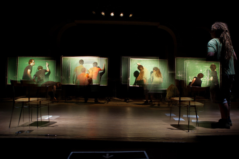 Gebaseerd op een tekst van Peter Handke schrijven vier personen in strak ritme zelfverwijten met krijt op een schoolbord en vegen ze weer af. Het levert een beklijvende brok percussietheater op. Om het geheel af te sluiten zet Jasna Velickovic, met elektrische spoelen, duimpianos aan het zingen. De etherische klanken worden overweldigd door een ‘laatste lied’ van Richard Strauss en verglijden zo in een apocalyptische vloedgolf.