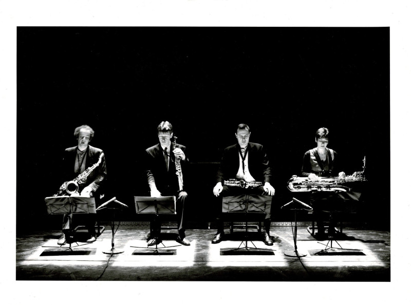 Centraal op het podium staat een groot bad, een vijver bijna, en langzaam vloeit uit vier hoeken melk op dat water (een werk van plastisch kunstenaar Trudo Engels). Als het hele oppervlak egaal wit is, zijn de vier saxofonisten ook tot een coherent geheel versmolten. Tot een hecht kwartet dat alleen nog heerlijke muziek maakt.